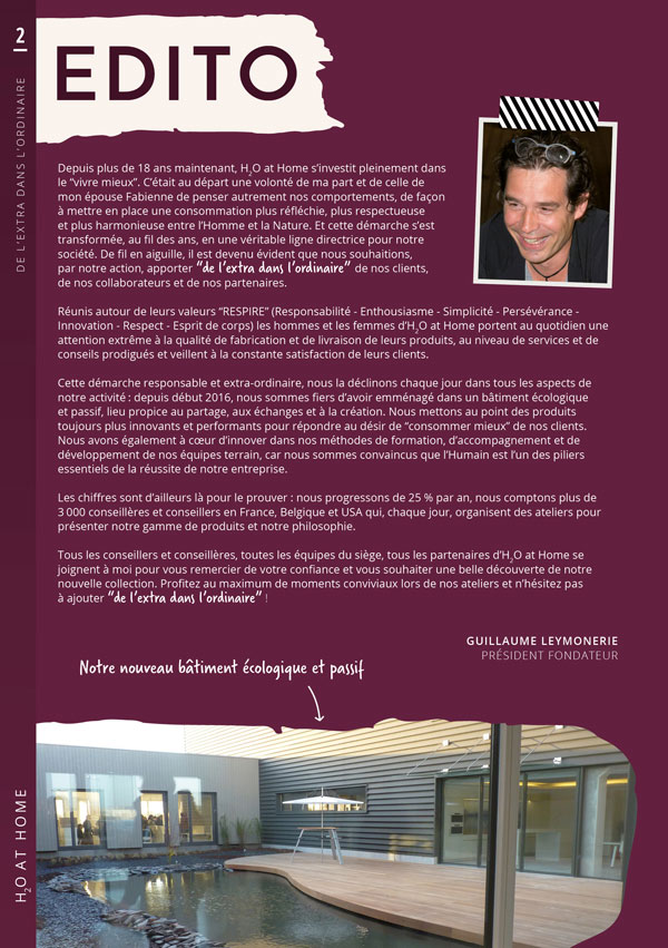 Mon aventure h2o a démarré en 2012. Je ne le regrette absolument pas. Cette activité a véritablement changé ma vie. Non seulement, j'ai découvert un métier varié qui m'a conquise et je l'exerce avec le plus grand bonheur. Enfin un métier où je peux concilier vie professionnelle et personnelle. Je travaille à mon rythme et je fais de bien belles rencontres. D'ailleurs, de belles amitiés sont nées en ateliers. Mon nom d'équipe : les Enthousiastes.