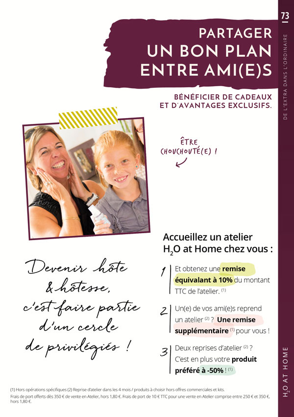 Être hôtesse H2O, c'est être couchoutée : recevez des cadeaux et des produits gratuitement ou bénificiez d'avantages.